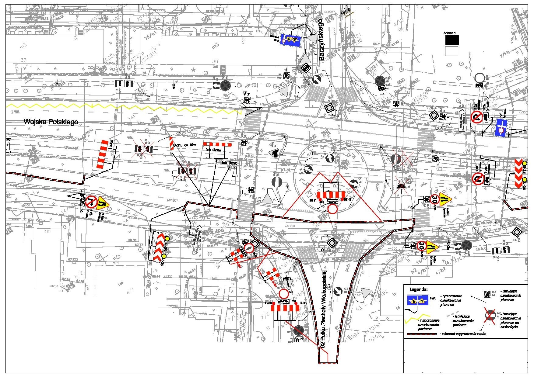 03 lipca 2018 roku od godz. 01:00 w ramach realizacji zadania pod nazwą: „Przebudowa trasy tramwajowej wzdłuż ulicy Wojska Polskiego na odcinku od ulicy Krzysztofa Kamila Baczyńskiego do ulicy Chemicznej w systemie zaprojektuj-wybuduj" zostanie zamknięty wlot ul. 62 Pułku Piechoty Wielkopolskiej na skrzyżowaniu ul. Wojska Polskiego i ul. Baczyńskiego. W tym czasie wykonawca projektu będzie odtwarzał nawierzchnię po robotach związanych z przebudową kanalizacji deszczowej. Prace powinny zakończyć się do 13.07.2018 roku. Wprowadzona zmiana w tymczasowej organizacji ruchu nie będzie powodowała zmian w komunikacji miejskiej. Poniżej przedstawiamy schemat tymczasowej organizacji ruchu w rejonie skrzyżowania ul. Wojska Polskiego i Baczyńskiego.